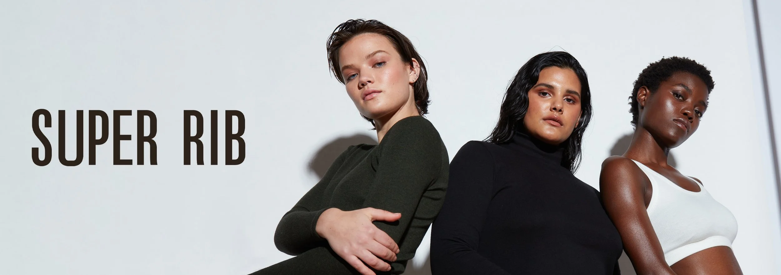 Touchable, texturized, and flatters every shape. Super Rib is a collection of body-hugging, lightweight ribbed pieces designed to to work with what you already own. As the Creative Lead, I worked with the team to produce marketing materials for this campaign. I designed Super Rib’s visual identity, and assets for web, email, and paid media.