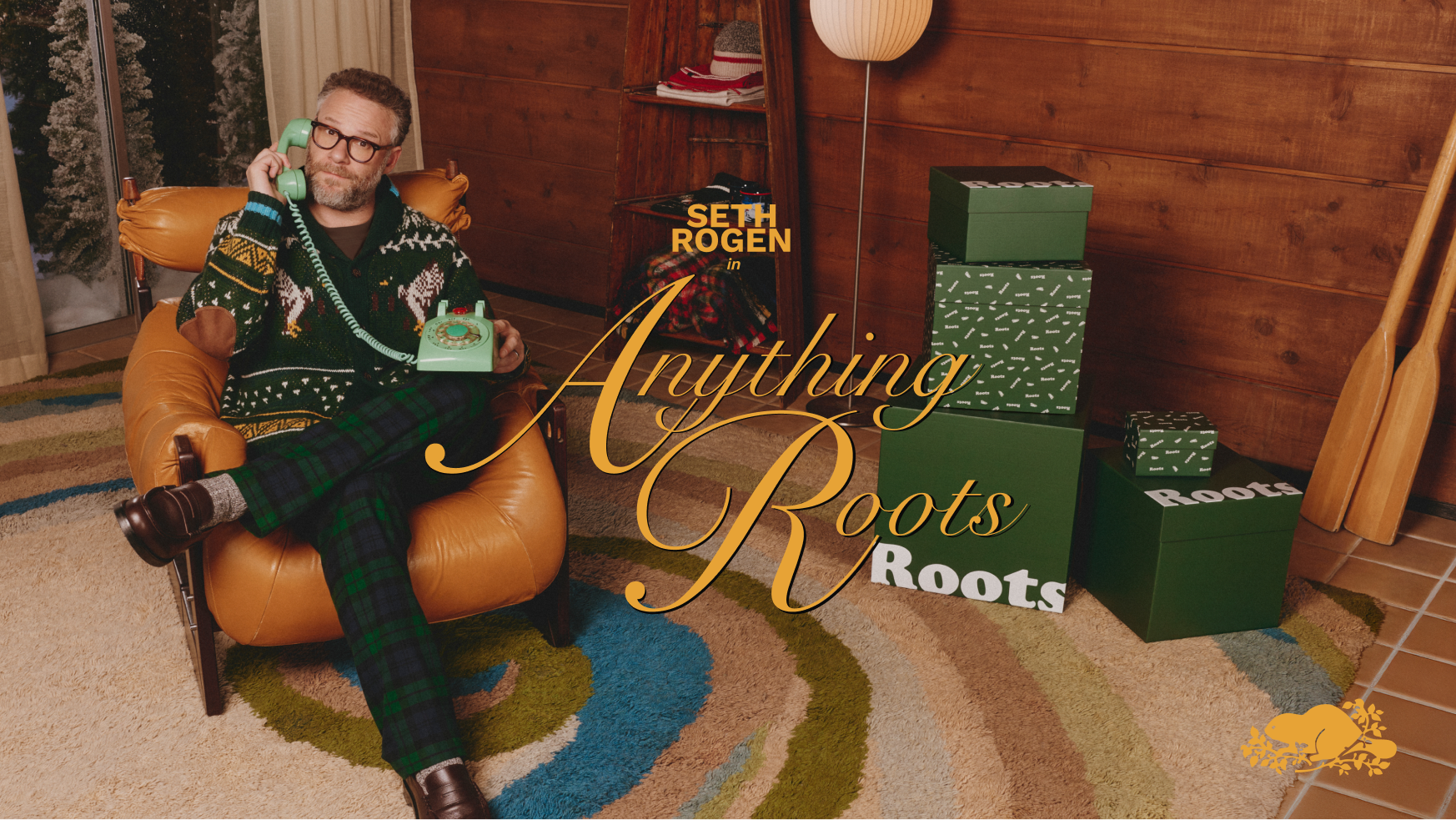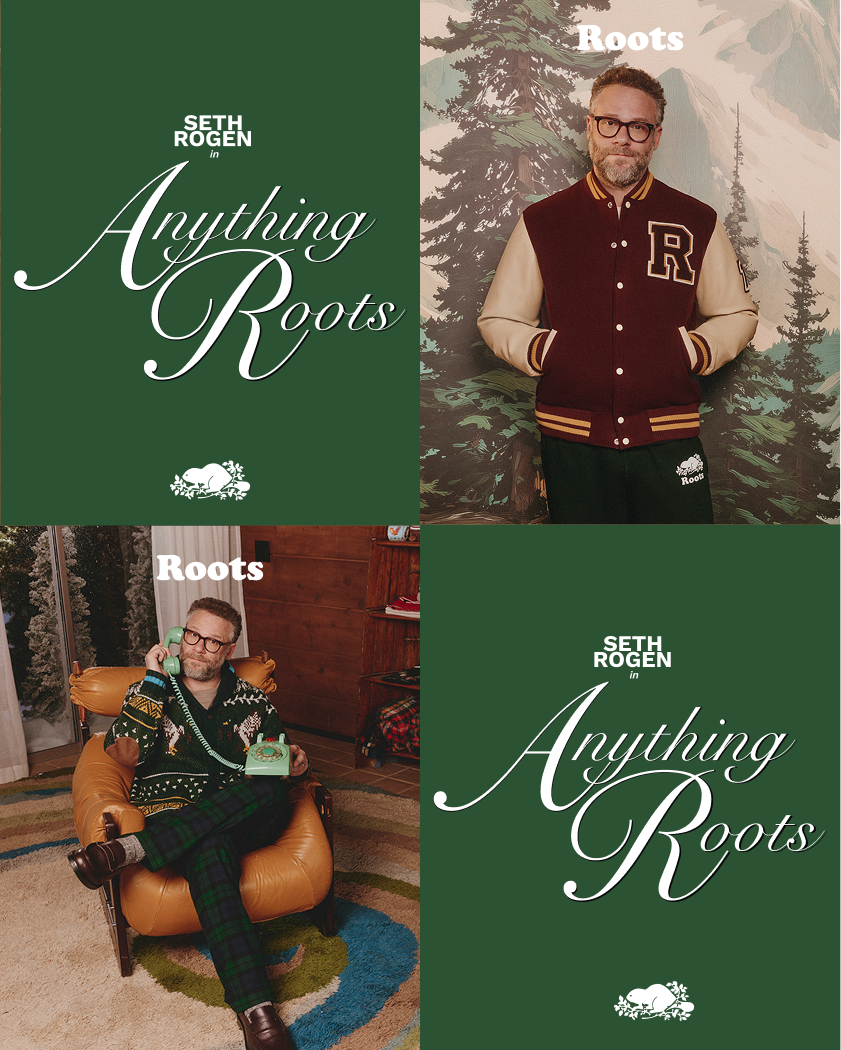 The “Anything Roots” campaign brings Roots humour and heart to life in a delightfully nostalgic way. Seth Rogen stars as the Roots Holiday Concierge, challenged to keep up with a slew of customer calls to solve every gifting dilemma with wit and just the right amount of Canadian charm.